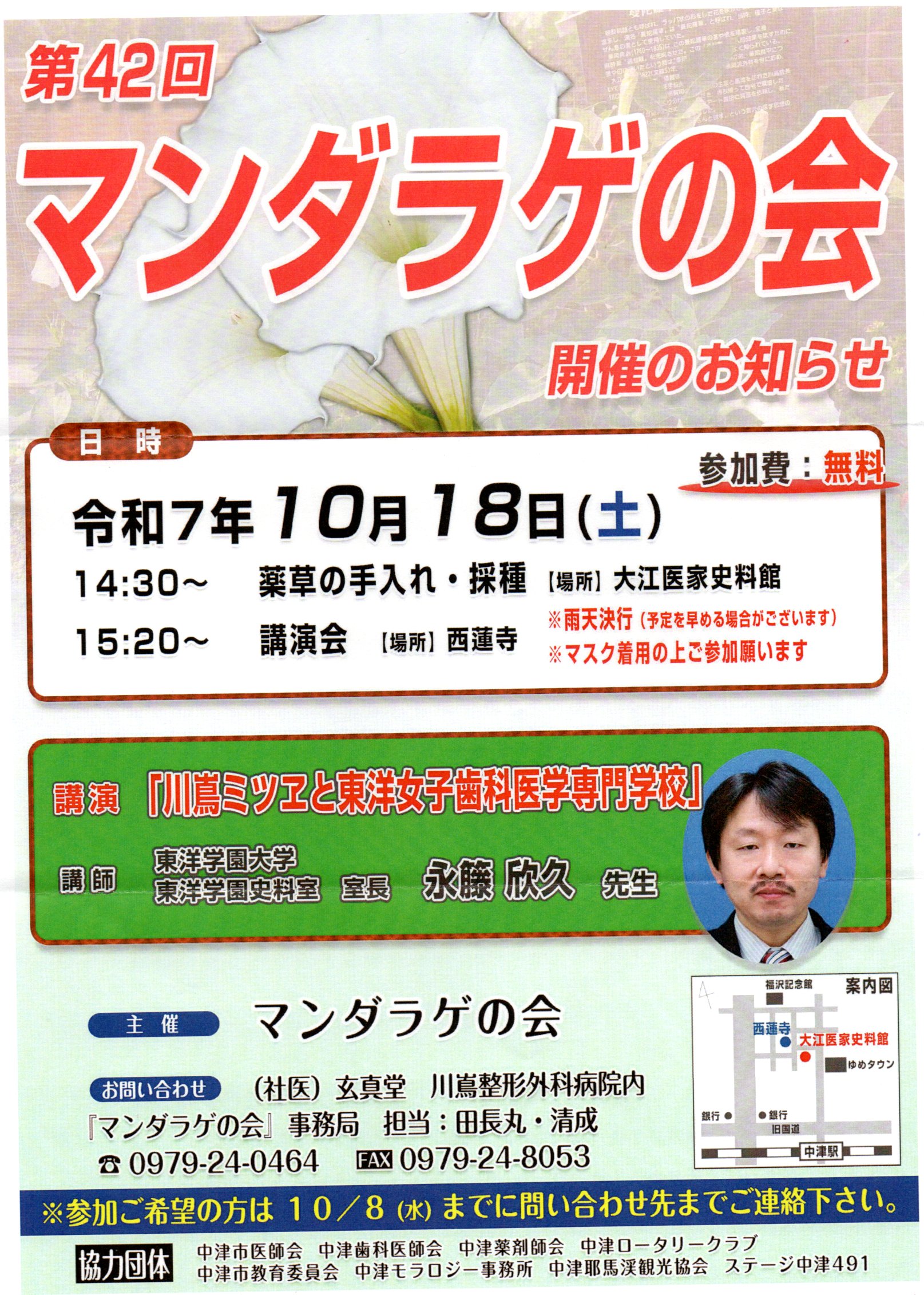 | 42回 | 2025.10.18 | 「 川嶌ミツエと東洋女子歯科医学専門学校」 | 永籐欣久 | 八面山金色温泉 |